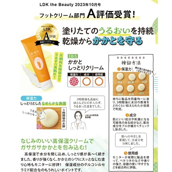 【かかとしっとりクリーム】朝晩、適量を手にとり、かかとや足裏のがざがざが気になる部分にていねいになじませてください、毎日使うことが、大切です。角質がやわらかくなっているお風呂上がりにご使用頂くとより効果的です。