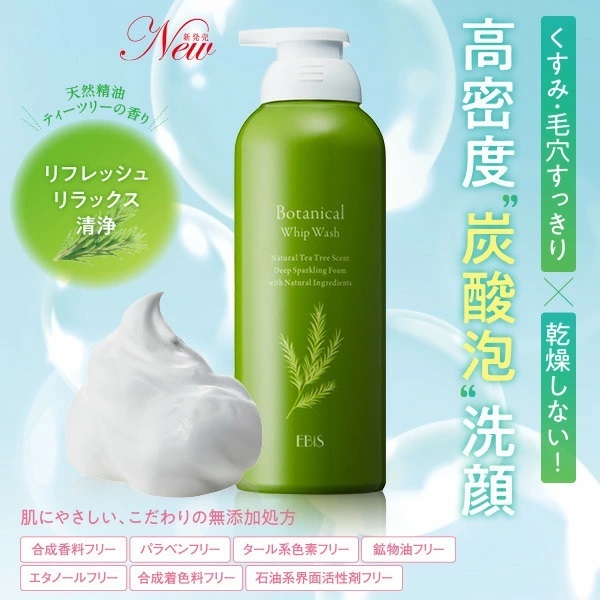 炭酸美容効果と保湿効果を併せ持つ新感触の高密度炭酸泡洗顔フォームです。きめ細やかな濃密炭酸泡が毛穴汚れ、黒ずみ、古い角質を、やさしくしっかりと落とし、ワントーン明るい、もちぷる透明美肌に導きます。