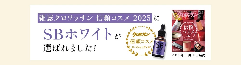 SBホワイトは、薬用有効成分ナイアシンアミドをベースに、グリチルリチン酸ジカリウムと11種類の天然植物成分を凝縮したオリジナル成分「ハイブリッドナイアシンアミドEX」をそのまま充填した日本初の薬用シワ改善・美白原液です※1。