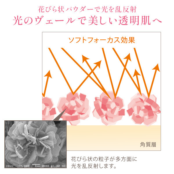 きめ細やかな花びら状パウダーがムラなく肌にフィット。