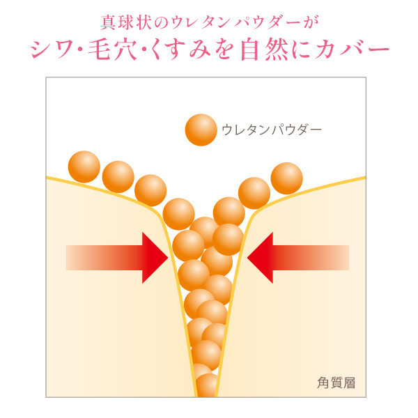 軽やかなサラサラのつけ心地で、何度塗り直しても厚塗りにならず、テカリやメイク崩れも防ぎ、長時間美しい透明肌が続きます。
